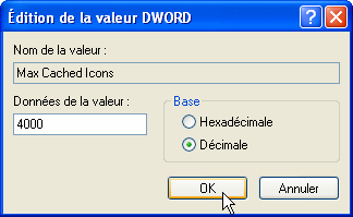 appelée cache. Si votre menu Démarrer et votre Bureau sont bien fournis, ce nombre peut être insuffisant. En augmentant la taille de la mémoire allouée à ces icônes, vous accélérez leur affichage.