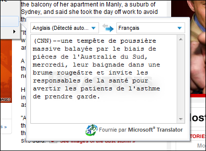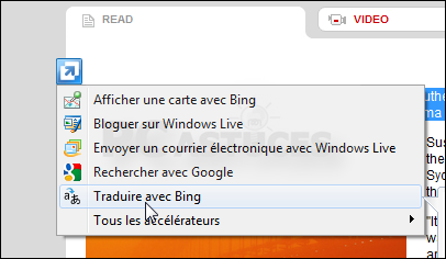 Grâce aux accélérateurs intégrés à Internet Explorer 8, vous pouvez facilement traduire un passage ou bien l'intégralité d'une page Web. Par défaut, cette fonctionnalité passe par le service